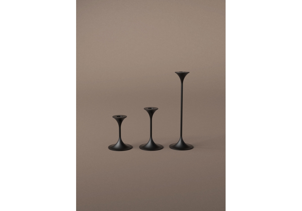 Jazz conçu par Max Brüel pour Karakter est un bougeoir en acier avec revêtement en poudre noir. Jazz contient un plateau, une base et trois tiges interchangeables de différentes dimensions.