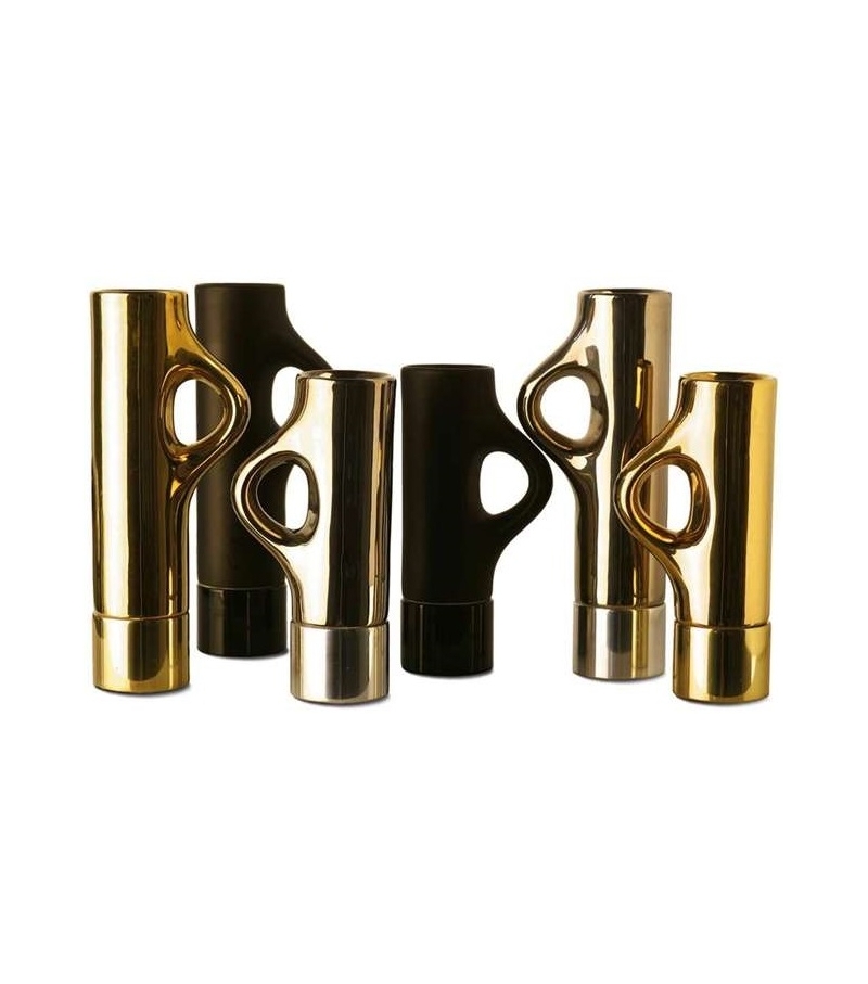 Lys conçu par Jakob Wagner pour B&B Italia, est une couple de porte-bougies en céramique émaillée avec base en métal. Disponible en différentes finitions.