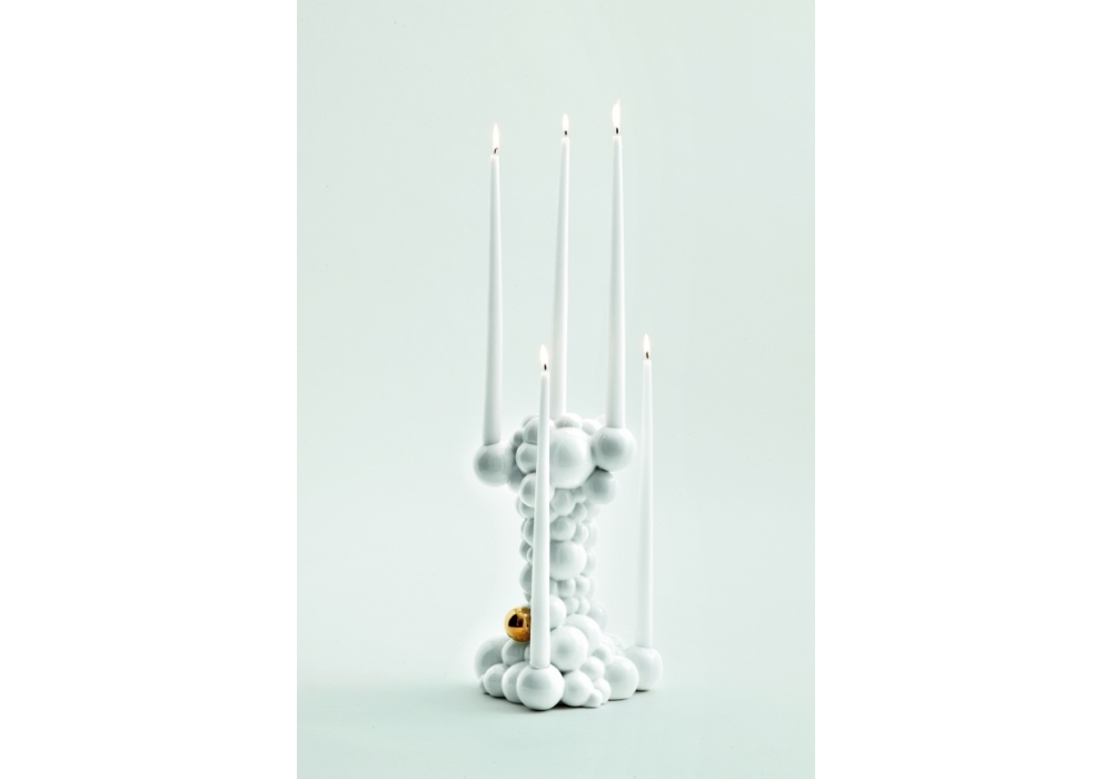 Bubbles conçu par Jaime Hayon pour Bosa est un bougeoir en céramique avec une forme de bulle qui le rend unique. Disponible en les glaçages colorés et les métaux précieux.