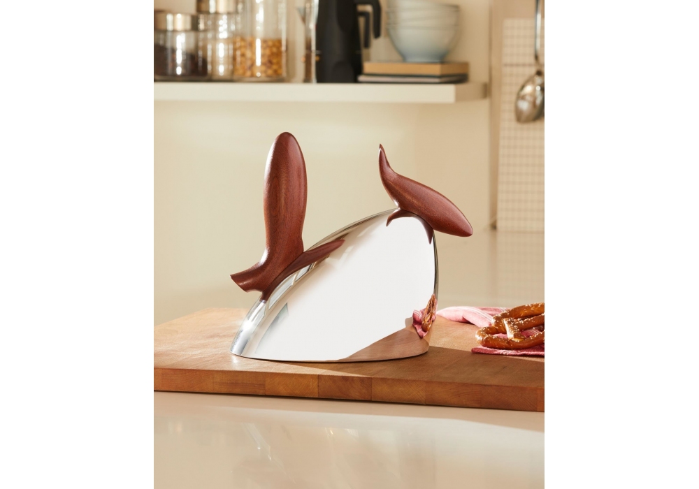 Pito conçue par Frank Gehry pour Alessi est une bouilloire en acier inoxydable 18/10. Manche et capuchon avec sifflet mélodique en bois d'acajou.