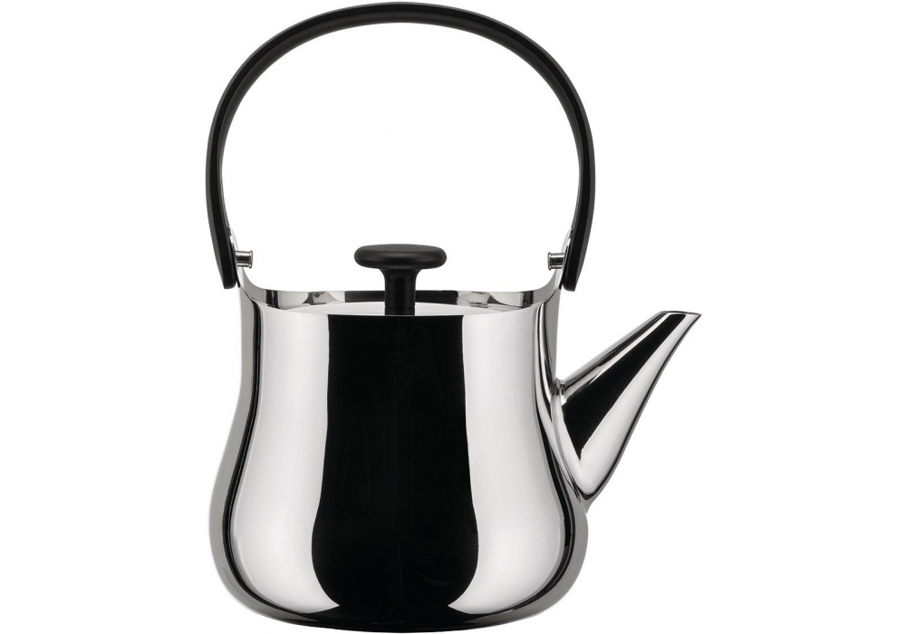 Cha conçue par Naoto Fukasawa pour Alessi est une bouilloire/théière en acier inoxydable 18/10 avec poignée en résine thermoplastique noire. Fond en acier magnétique adapté à la cuisson par induction.