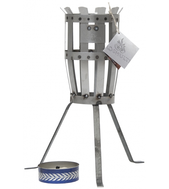Hilding conçu par Anders Norgren pour Röshults est un panier à feu réalisé en fer non traité.