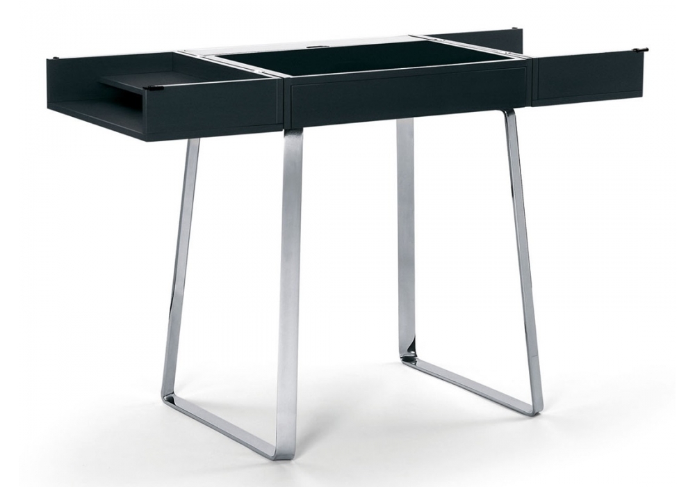 Zelos conçu par Christoph Böninger pour ClassiCon est un beau secrétaire dépliant avec des compartiments latéraux et un tiroir. Espace additionnel avec passage pour câbles. Abattant en cuir pleine fleur. Corps laqué brillant ou plaqué bois véritable. Structure en acier platz chromé. Disponible en différentes finitions.