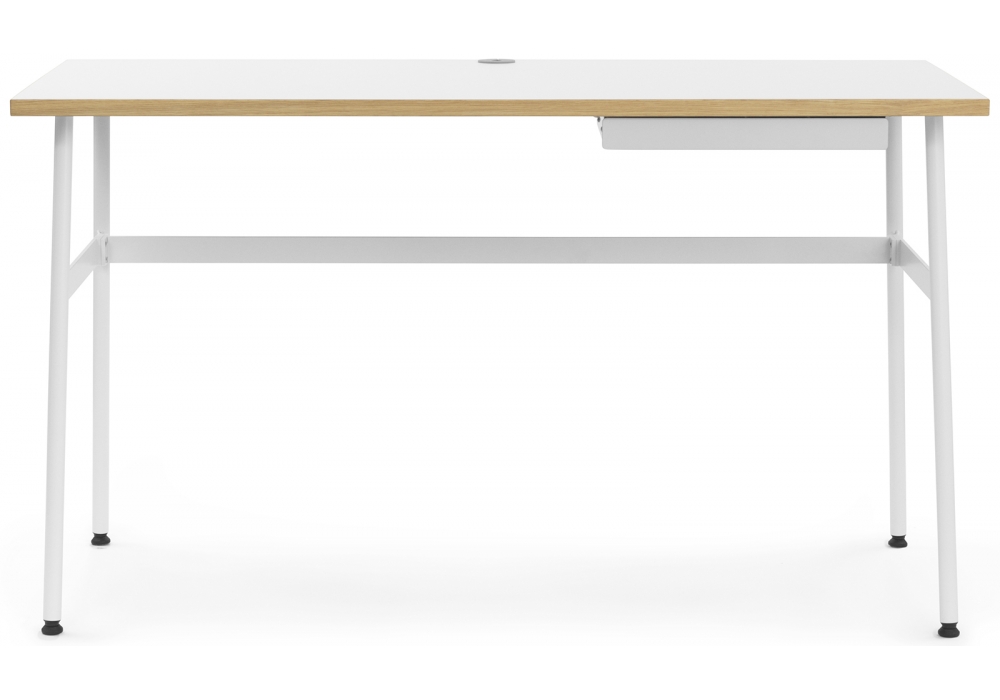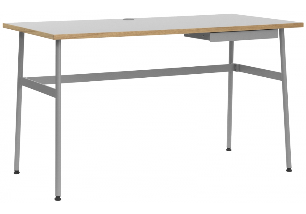 Journal conçu par Simon Legald pour Normann Copenhagen est un bureau, avec plateau en chêne plaqué et structure portante en acier. Journal est disponible en trois finitions ; blanc, noir ou gris.