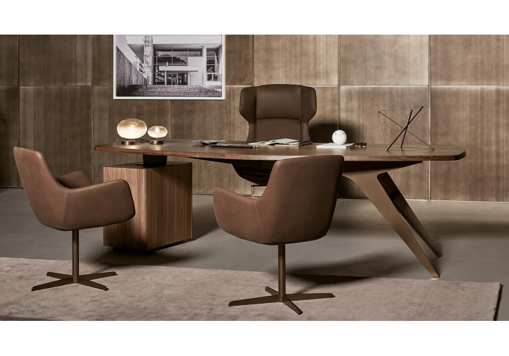 Diver conçu par Mauro Lipparini pour Bonaldo est un bureau en bois finition noyer canaletto, base en métal en différentes finitions.