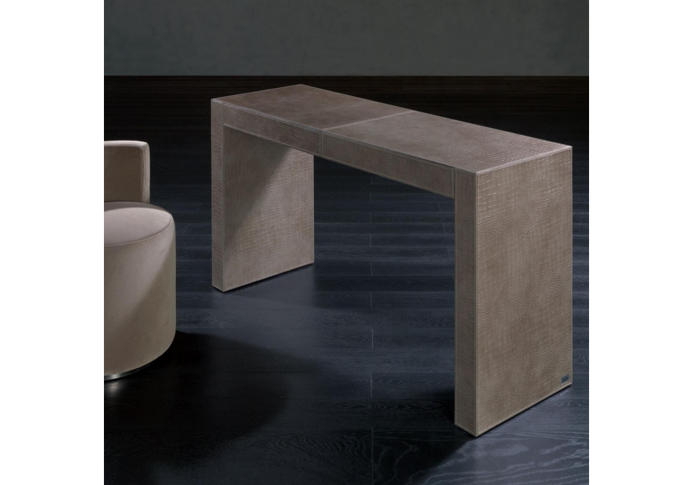 Chiba conçu par Rugiano est un bureau avec deux tiroirs recouverts de cuir. Sur demande, verre de protection pour le dessus.