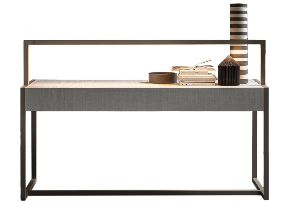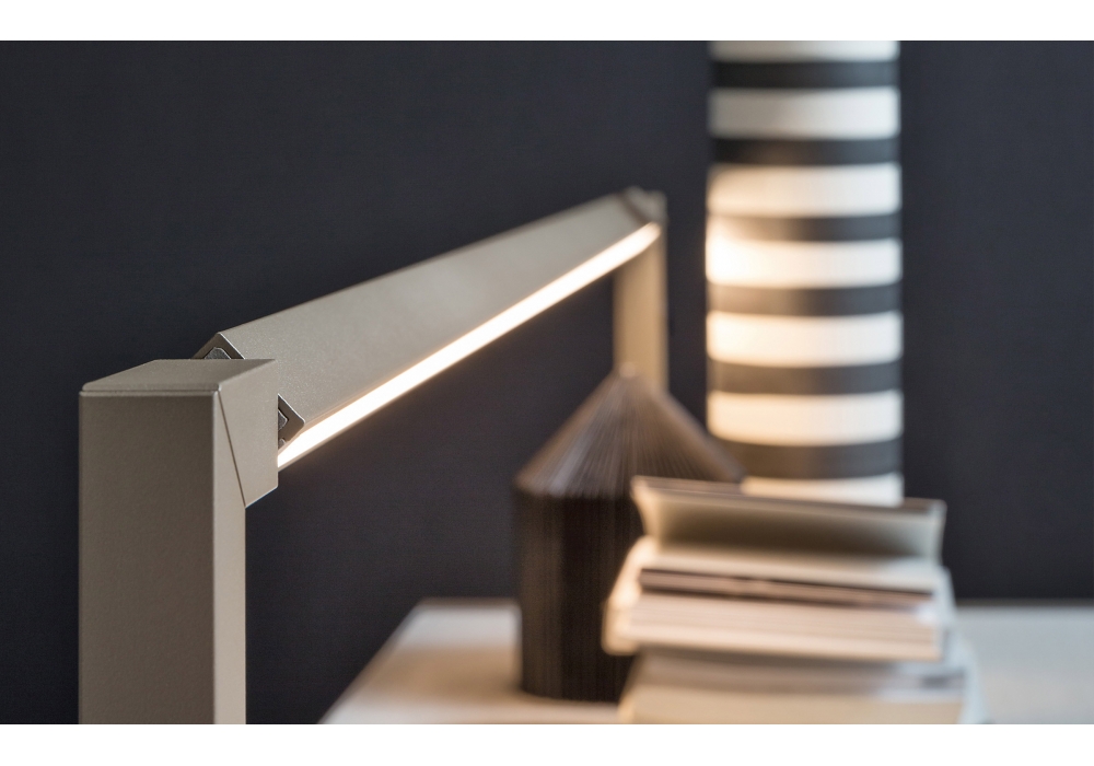 Continuum conçu par Matteo Nunziati pour Natevo est un bureau avec structure et plateau disponible en différentes finitions. Éclairage disponible avec interrupteur on/off ou éclairage smart CASAMBI. Également disponible en 2 dimensions.
