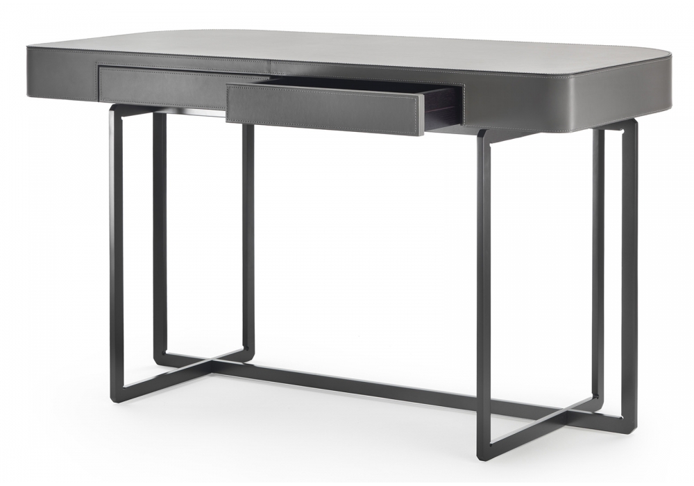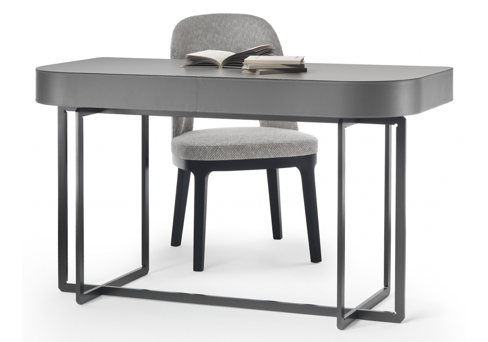 Marmaduke conçu par Roberto Lazzeroni pour Flexform est un bureau de la collection Mood. Structure en métal et plateau en bois avec revêtement en cuir de selle disponible en différentes finitions.