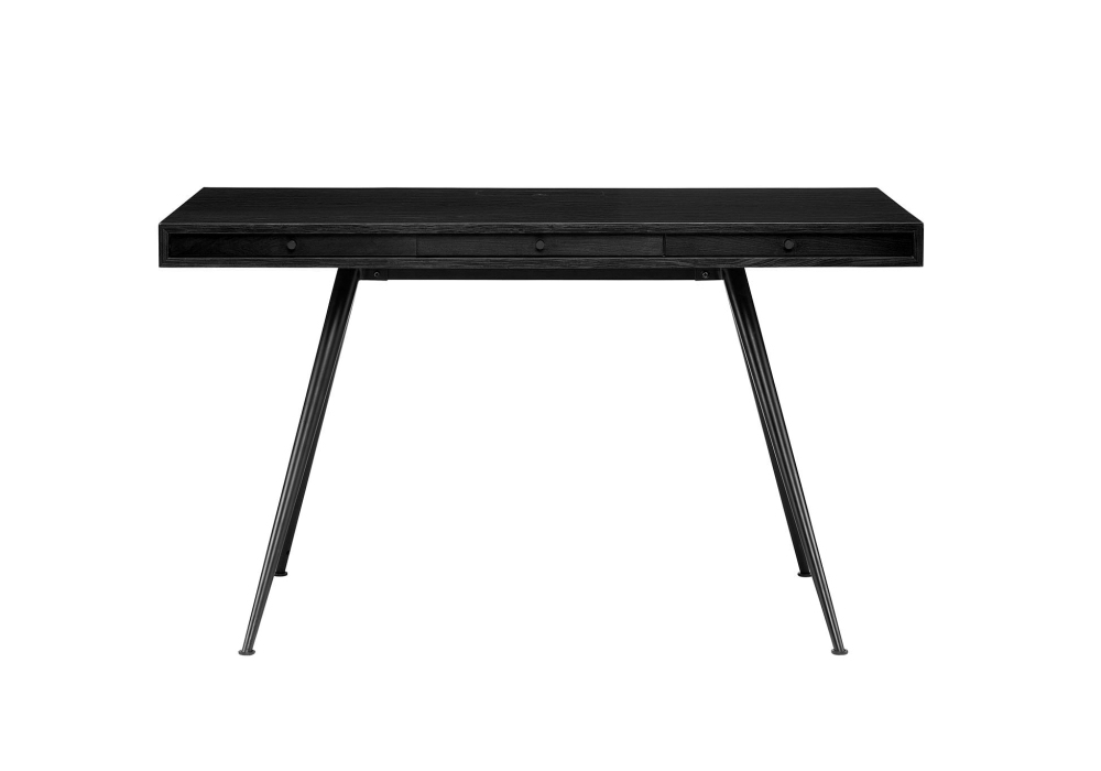 JFK Desk conçu par Kristian Sofus Hansen et Tommy Hyldahl pour Norr11 est un bureau avec des pieds en métal noir et haut en frêne noir.