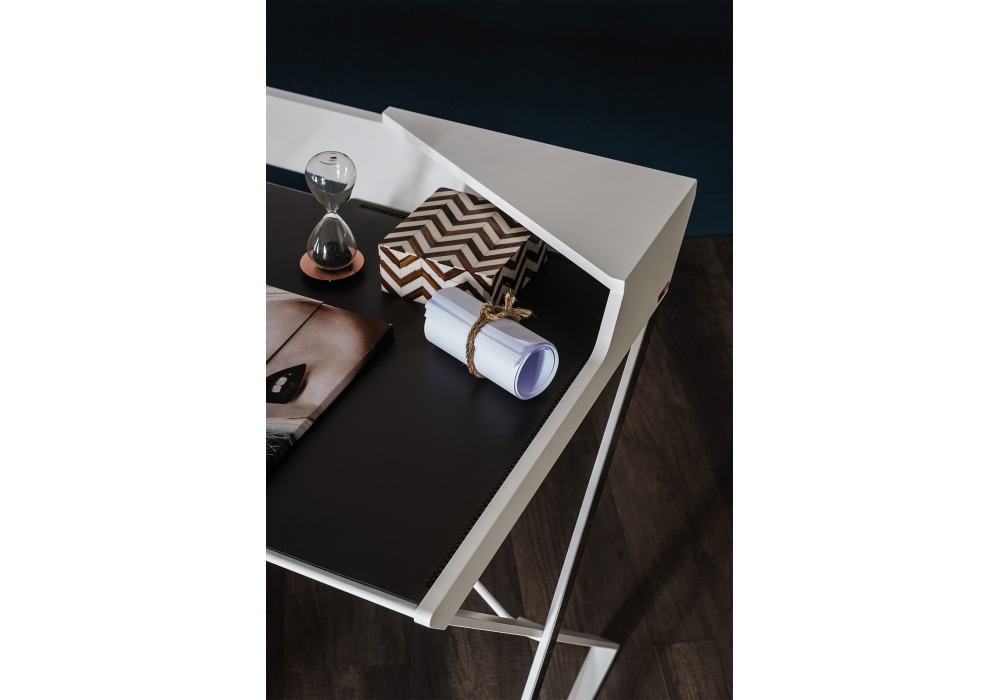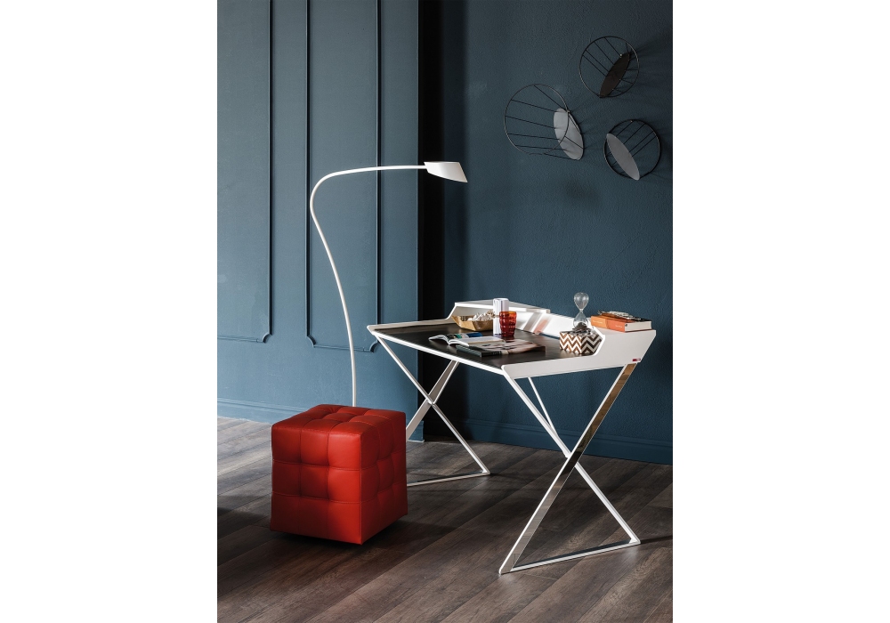 Qwerty conçu par Andrea Lucatello pour Cattelan Italia est un bureau avec plateau en MDF laqué, structure en acier verni et profil en acier inoxydable poli. Disponible avec sous-main en cuir selon sur demande.