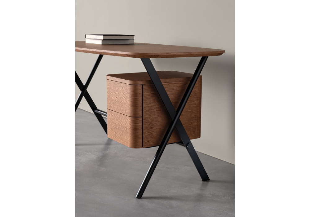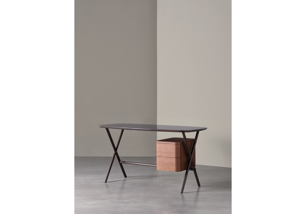 Jasper conçu par Andrea Parisio pour Meridiani est un bureau en bois avec structure en métal. Disponible en plusieurs finitions.