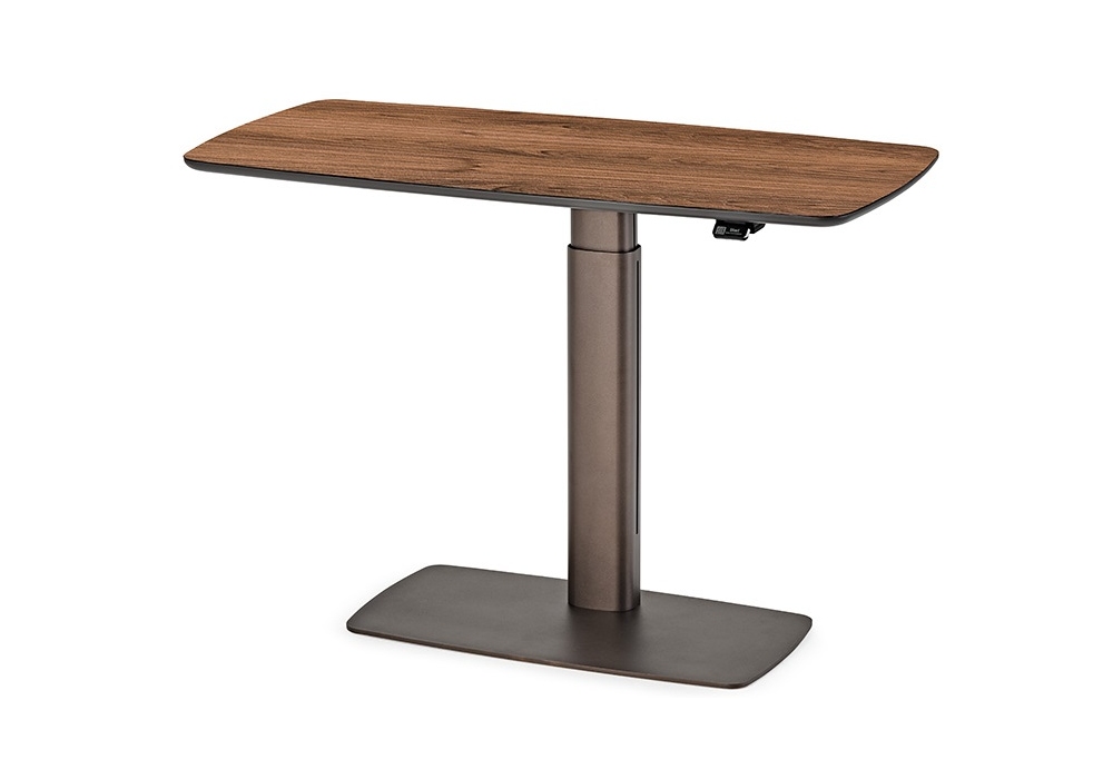 Runner Wood conçu par Paolo Cattelan pour Cattelan Italia est un bureau à hauteur réglable électriquement. Plateau en bois. Structure en acier laqué gaufré.