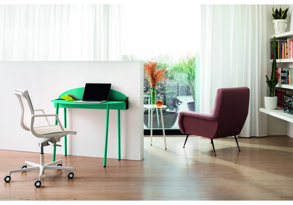 Crono conçu par Favaretto and Partners pour Luxy est un bureau avec structure en métal peint et plateau découpé au laser. Il est possible de choisir la version avec ou sans kit passe-câble électrifié. Disponible en différentes finitions.