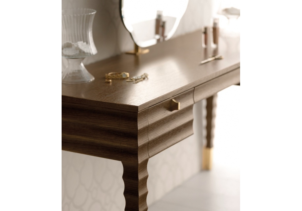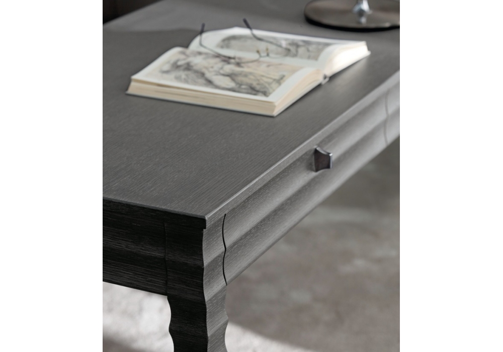 Elettra conçu par Castello Lagravinese Studio pour Opera Contemporary est un bureau réalisé en bois avec poignées et pointes en métal.