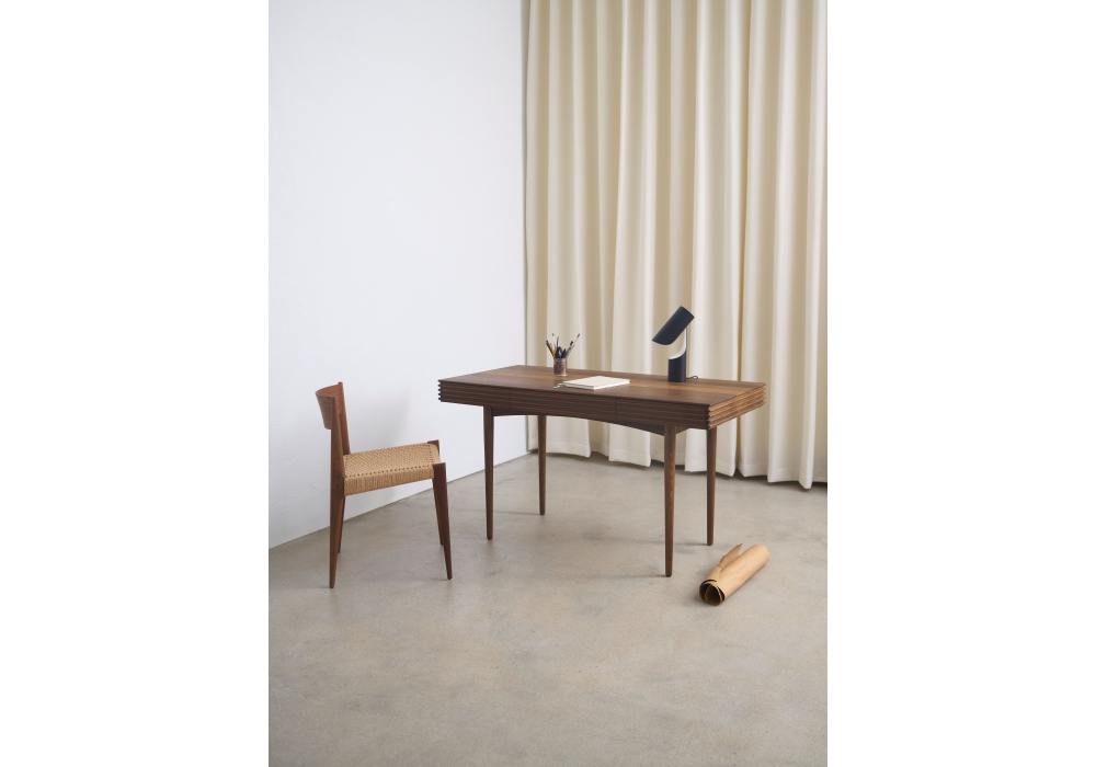 Groove conçu par Christian Troels pour Dk3 est un bureau en bois massif, disponible en différentes finitions. Acheminement des câbles en option en laiton ou en acier inoxydable.