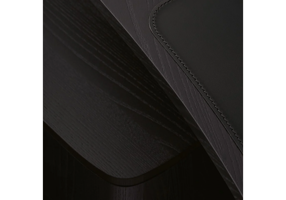 Adrien conçu par Jean-Marie Massaud pour Poliform est un bureau composé d'une structure en bois massif teinté orme noir, de métal laqué mat et brillant en couleurs, ou peint mat et brillant en transparent clair ou transparent foncé. Plateau en orme noir. Ce plateau est également disponible avec un sous-main en cuir coloré. Commode réglable en orme noir en option.