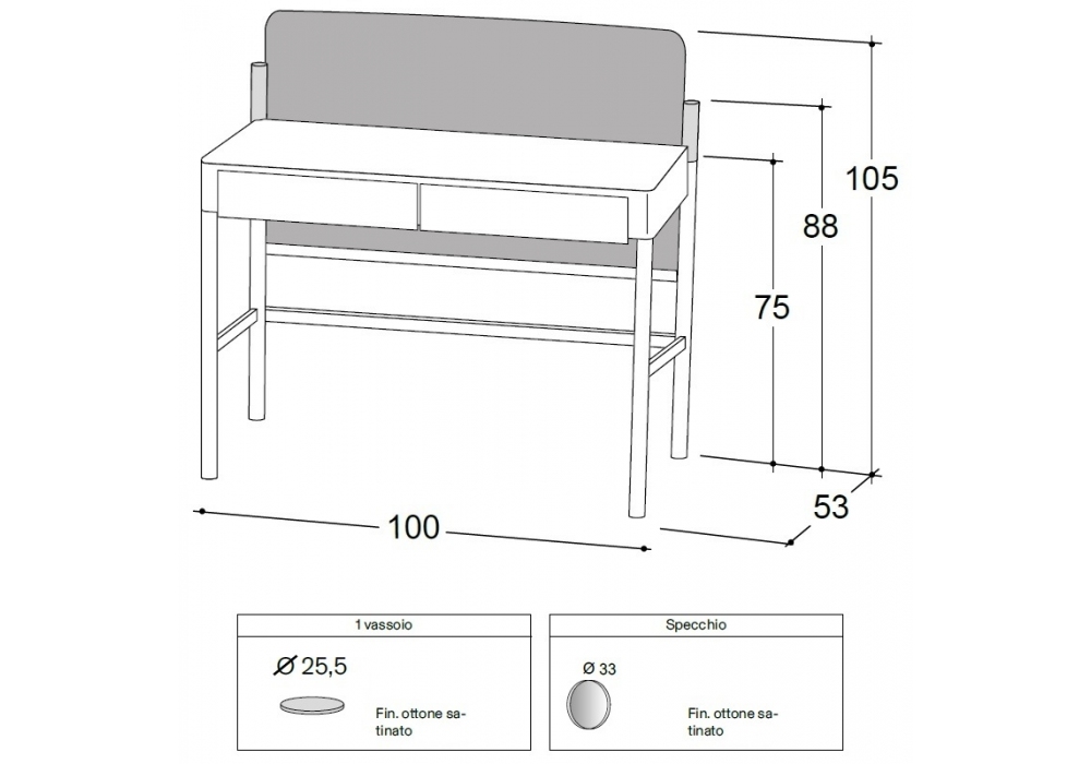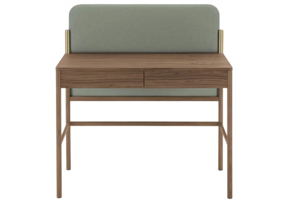Flag conçue par Ruga Perissinotto pour Bolzan est une élégante coiffeuse avec structure en bois, disponible en noyer Canaletto ou en frêne, avec finitions chêne ou wengé. Le panneau arrière est recouvert de tissu. Les détails en laiton satiné apportent une touche d'élégance et de raffinement. La particularité de ce bureau réside dans sa fonctionnalité: en plus d’être un poste de travail pratique, c’est aussi une coiffeuse conçue pour ceux qui souhaitent allier esthétique et utilité.