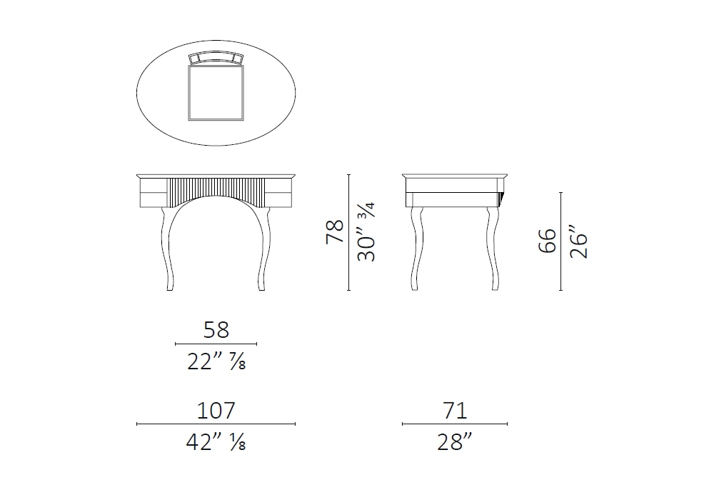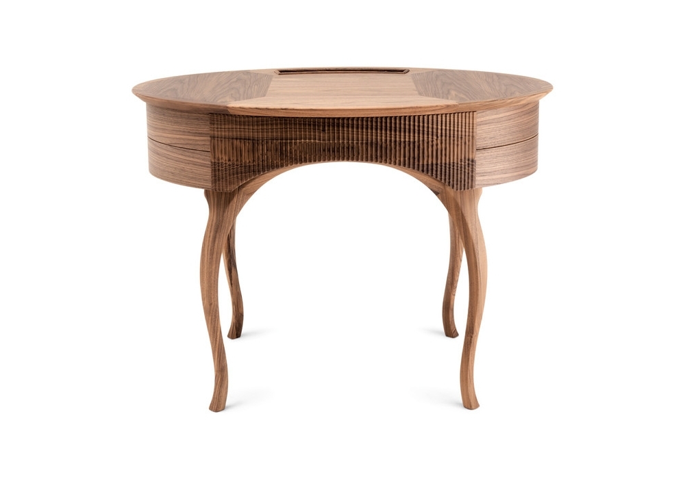 Arabella by Ceccotti Collezioni is a small writing desk made in solid American walnut. This writing desk has a central door and swivel side drawers.
