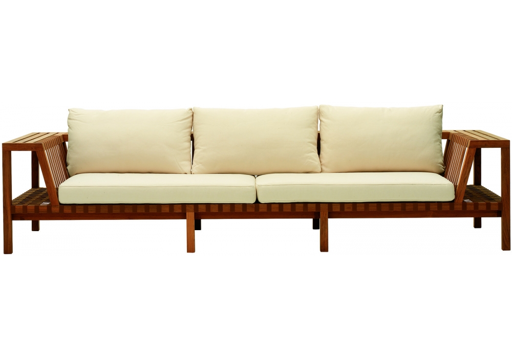 Network is an outdoor 3 seater sofa deisgned by Rodolfo Dordoni for Roda. Network is Roda’s archetypal collection, the one which marked the firm’s real turning point in terms of design. A product line whose highly distinctive feature is the marked presence of solid teak, a modular system for living and relax situations: Network, that is. With brilliant providence, Rodolfo Dordoni turns the skeleton of the backrest into a perfect shelf to hold the accessories of rest & relaxation. The structure offers both shape and ornament: clean lines and elegant simplicity work horizontally, in a rhythmical game of full and empty spaces.