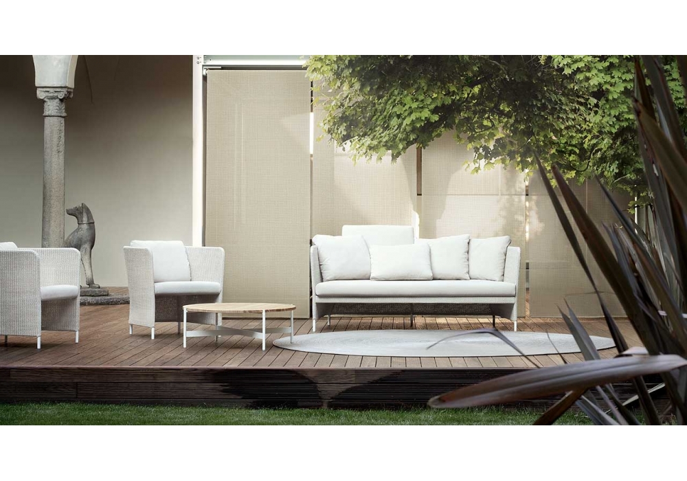 Teatime conçu par Francesco Rota pour Paola Lenti est un canapé d'extérieur avec coque rembourrée en tissu Thuia. Les coussins, l'assise et le dossier sont disponibles en différentes finitions. La structure en acier est toujours peinte dans des couleurs assorties au tissu de la coque. Disponible en version 2 ou 3 places.