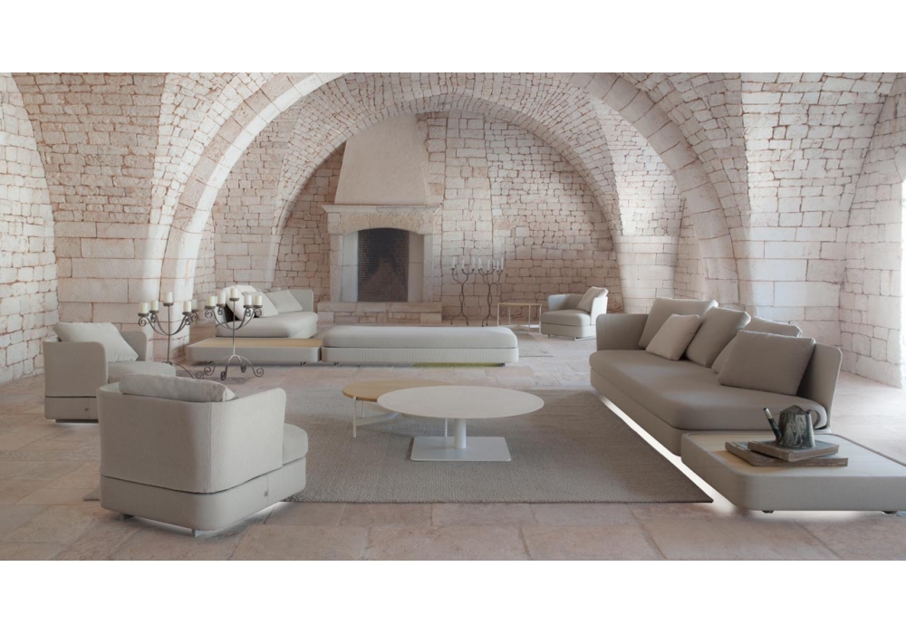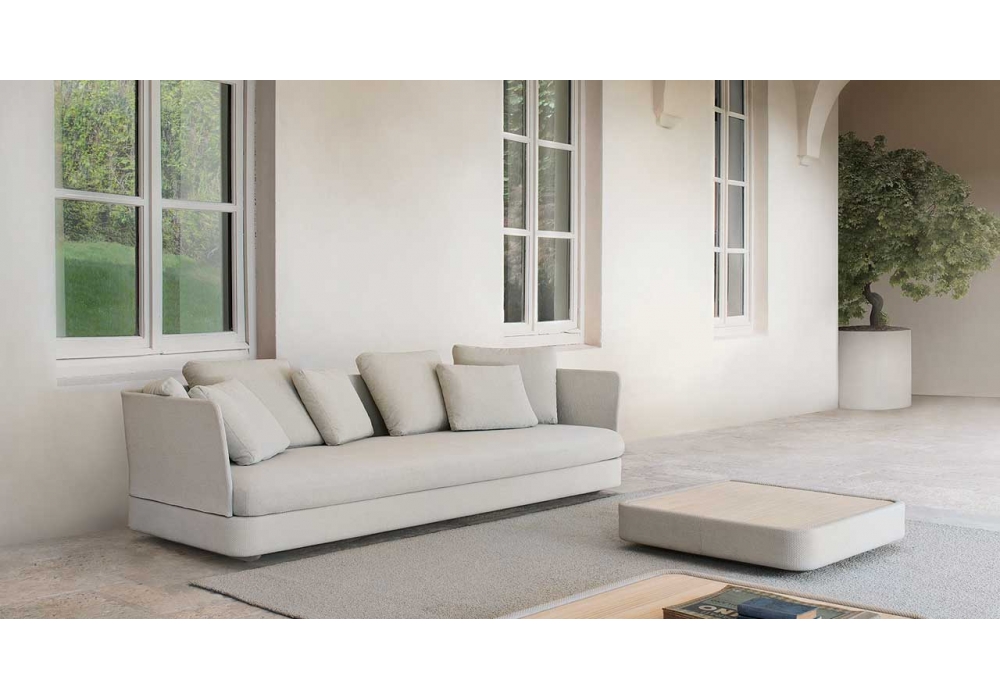 Cove conçu par Francesco Rota pour Paola Lenti est un canapé d'extérieur modulable disponible en différents modèles. Le revêtement de la structure, des dossiers et des accoudoirs est en tissu Aquatech disponible en différentes couleurs, tandis que les coussins d'assise sont recouverts de tissus Rope T et Luz.