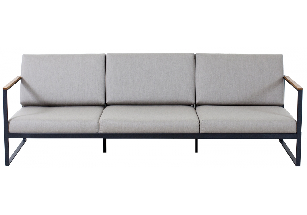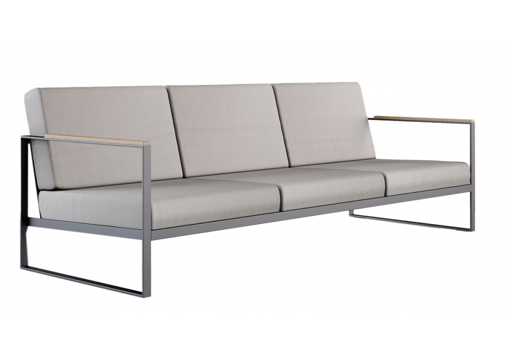 Garden Easy Sofa conçu par Broberg & Ridderstråle pour Röshults est un canapé à deux ou trois places avec structure en acier inoxydable anthracite et teck. Coussins d'assise et de dossier en tissu Sunbrella® résistant aux intempéries disponibles en différents revêtements.