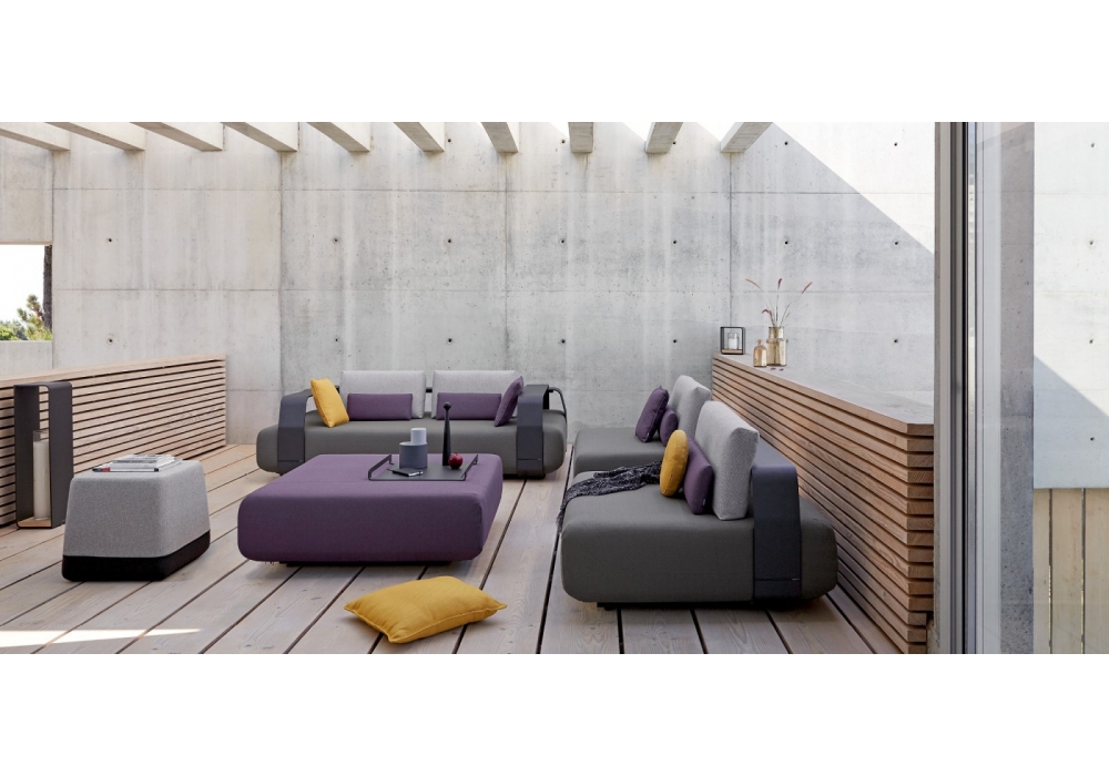 Kumo conçu par Lionel Doyen pour Manutti est un canapé avec structure en aluminium et revêtement en tissu. Les accoudoirs et dosserets en aluminium thermolaqués, coulissent et permettent de personnaliser son assise. Disponible en différentes finitions.
