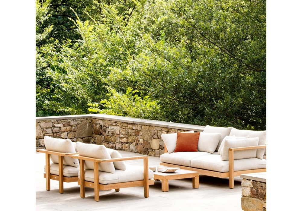 Pure Sofa Teak conçu par Andrei Munteanu pour Tribù est un canapé avec structure en teck et coussins disponibles en 2 designs différents : Miami et Casual. Le rembourrage est disponible dans différents tissus et couleurs d'extérieur. Le canapé est fabriqué en différentes tailles et compositions / ensembles.