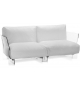 Pop Outdoor conçu par Piero Lissoni & Carlo Tamborini pour Kartell est un canapé réalisé avec une structure en polycarbonate transparent et des coussins d'assise et de dossier en mousse de polyuréthane. Tapisserie extérieure amovible en tissu.