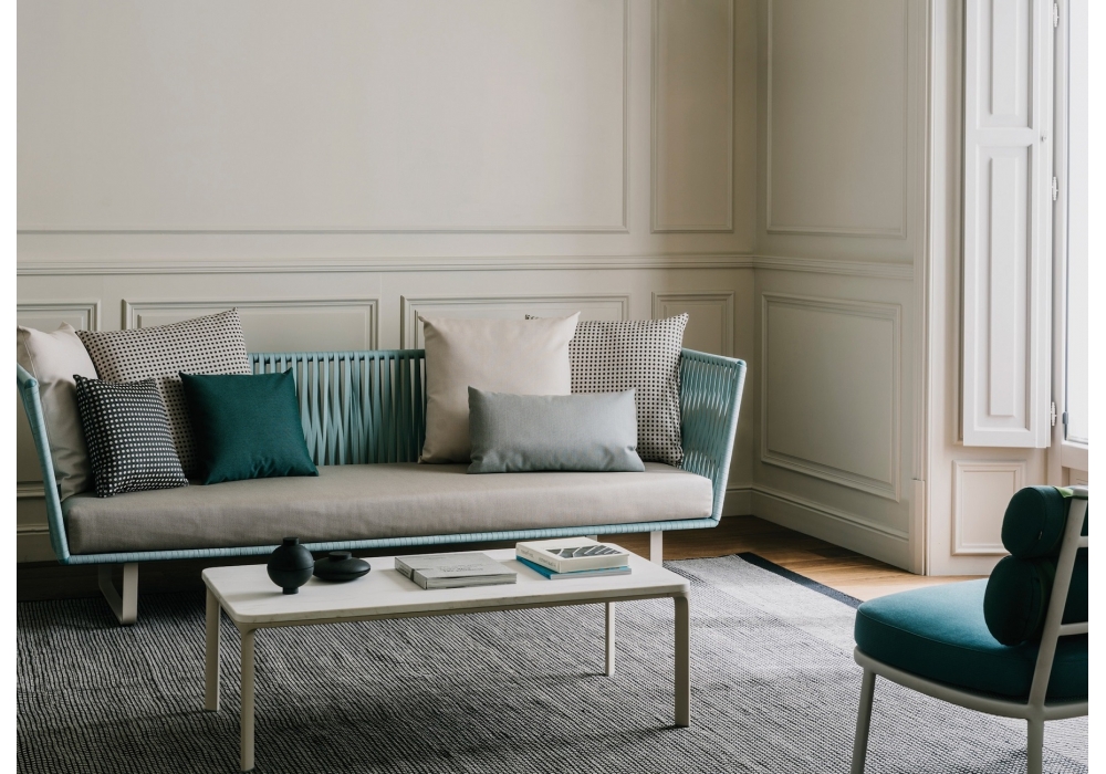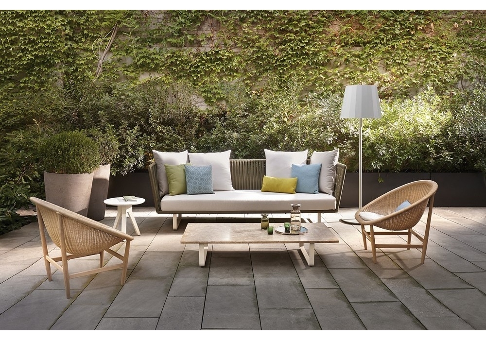 Bitta conçu par Rodolfo Dordoni pour Kettal est un canapé 3 places avec une structure en aluminium peint et une base en aluminium peint ou en bois de teck naturel. La coque est recouverte de corde synthétique avec des coussins rembourrés et recouverte de tissu adapté à une utilisation en extérieur. Bitta est disponible en différentes finitions.
