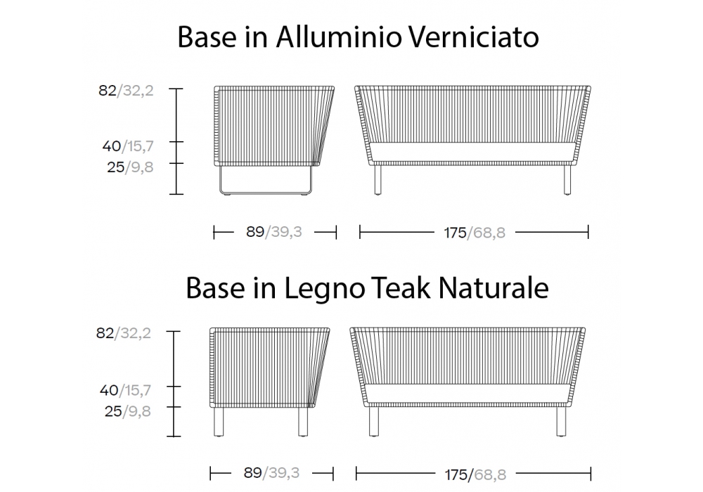 Matériau de construction Alluminio; Alluminio e Legno Teak; Corda Sintetica; Tessuto.