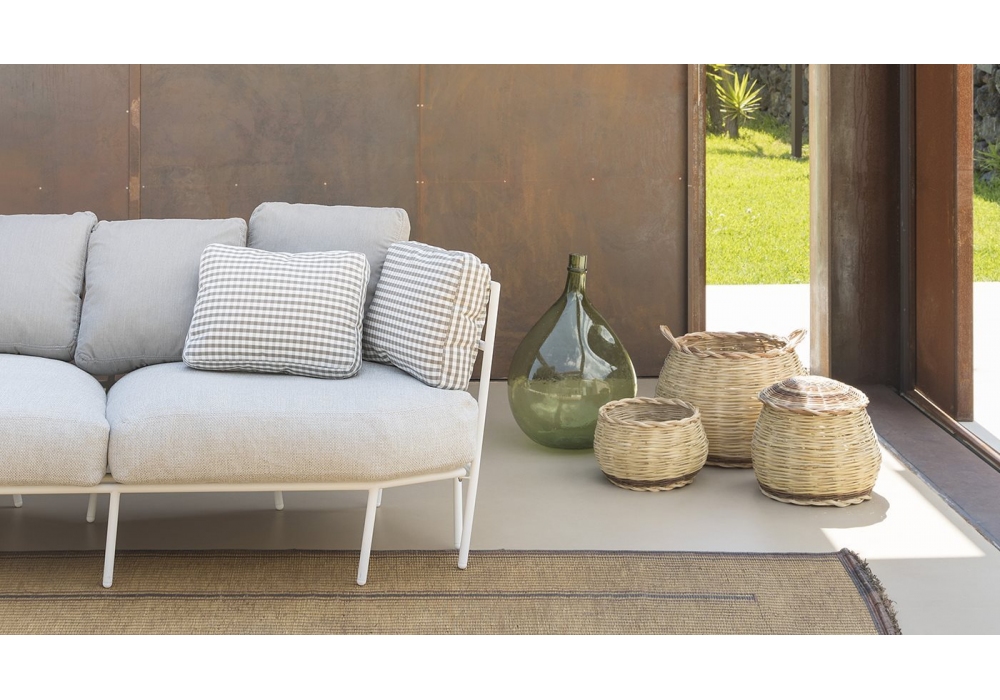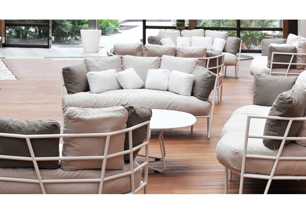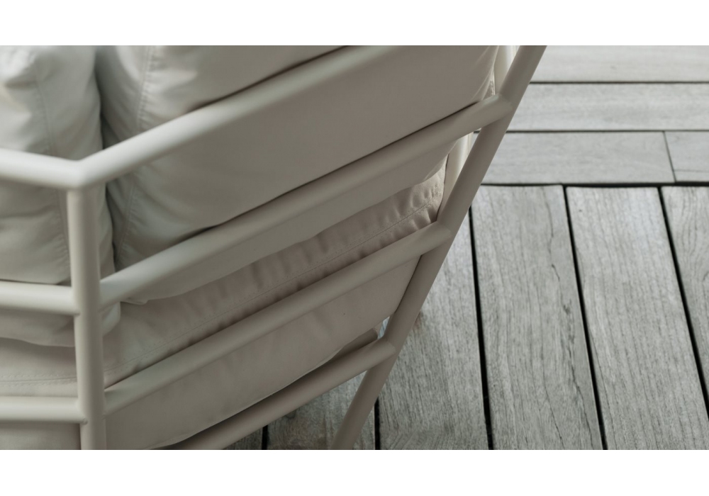Dehors conçu par Michele De Lucchi pour Alias est un canapé pour l'extérieur avec une structure en acier peint et une assise recouverte de tissu amovible. Les coussins sont inclus.
