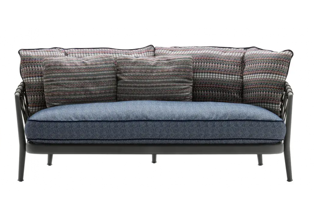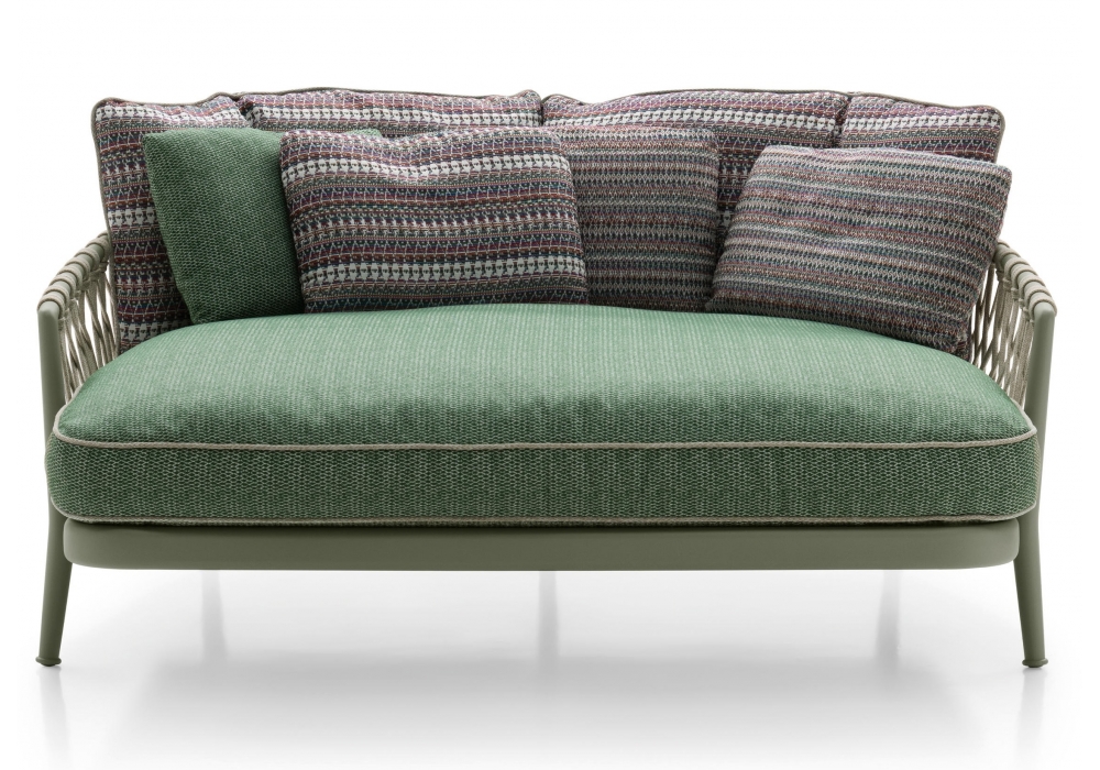 Erica '19 conçu par Antonio Citterio pour B&B Italia Outdoor est un canapé avec structure en aluminium peint avec tissage en fibre de polypropylène. Revêtement avec profils disponibles en différentes couleurs de tissu.