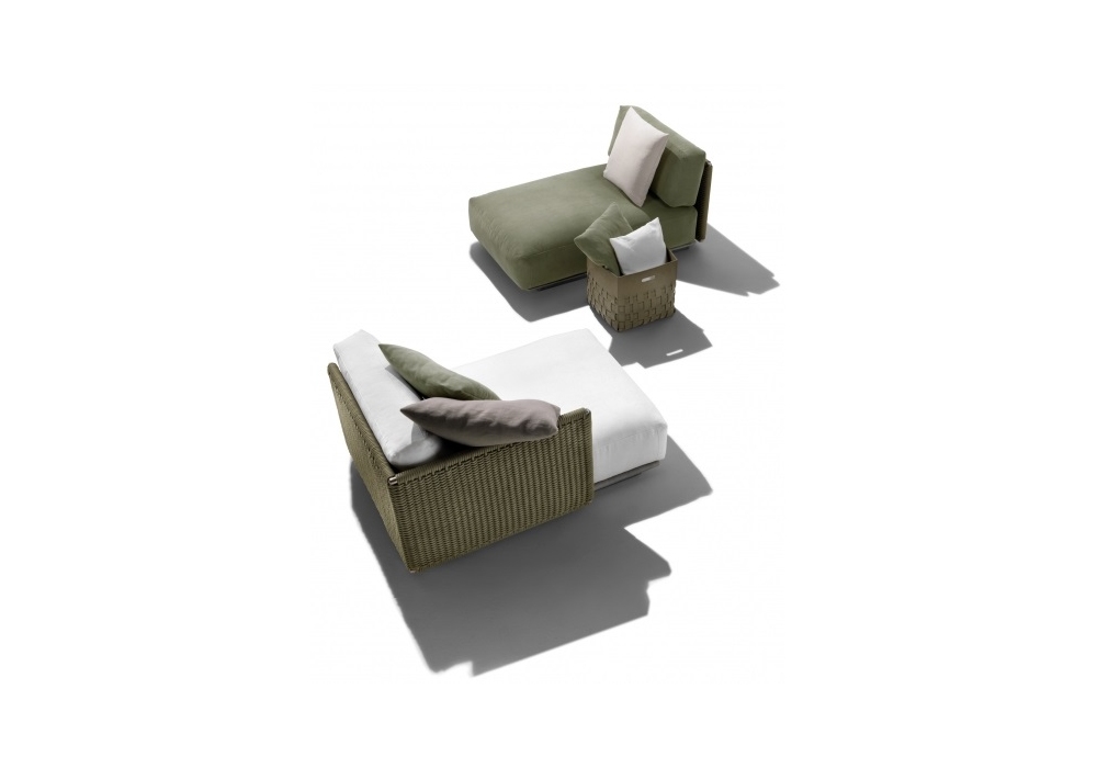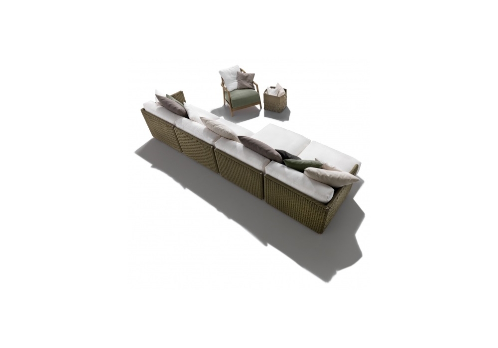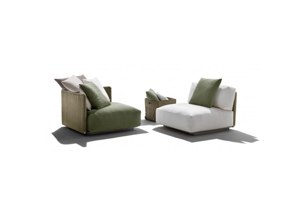 Eddy conçu par Flexform est un canapé modulaire de la collection Outdoor. Coquille realisé en tressage en fibre de polypropylène faite à la main. Base en contreplaqué marine et structure en acier revêtu par poudre de différentes couleurs. Coussins d'assise et de dossier rembourrés et recouverts d'un tissu hydrofuge.