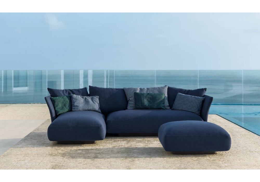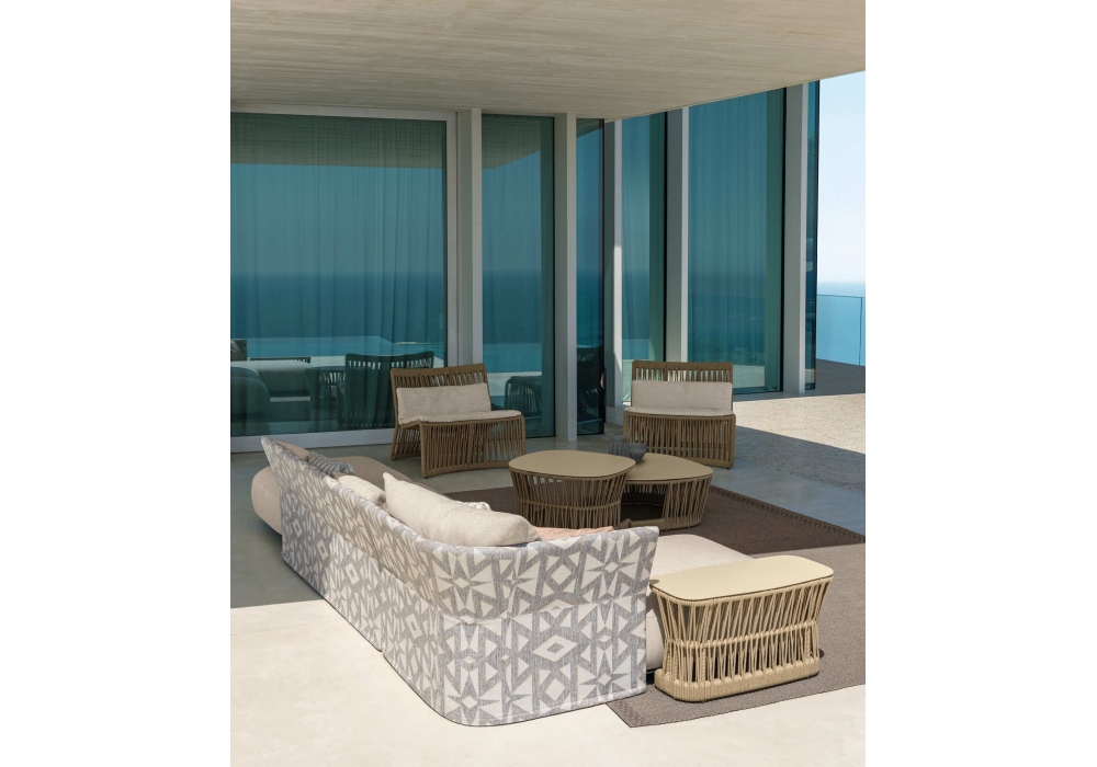 Cliff Tissu est un canapé par Ludovica et Roberto Palomba pour Talenti. Les détails sont réalisés avec des tissus à motifs géométriques, créant une impression de gaieté.
