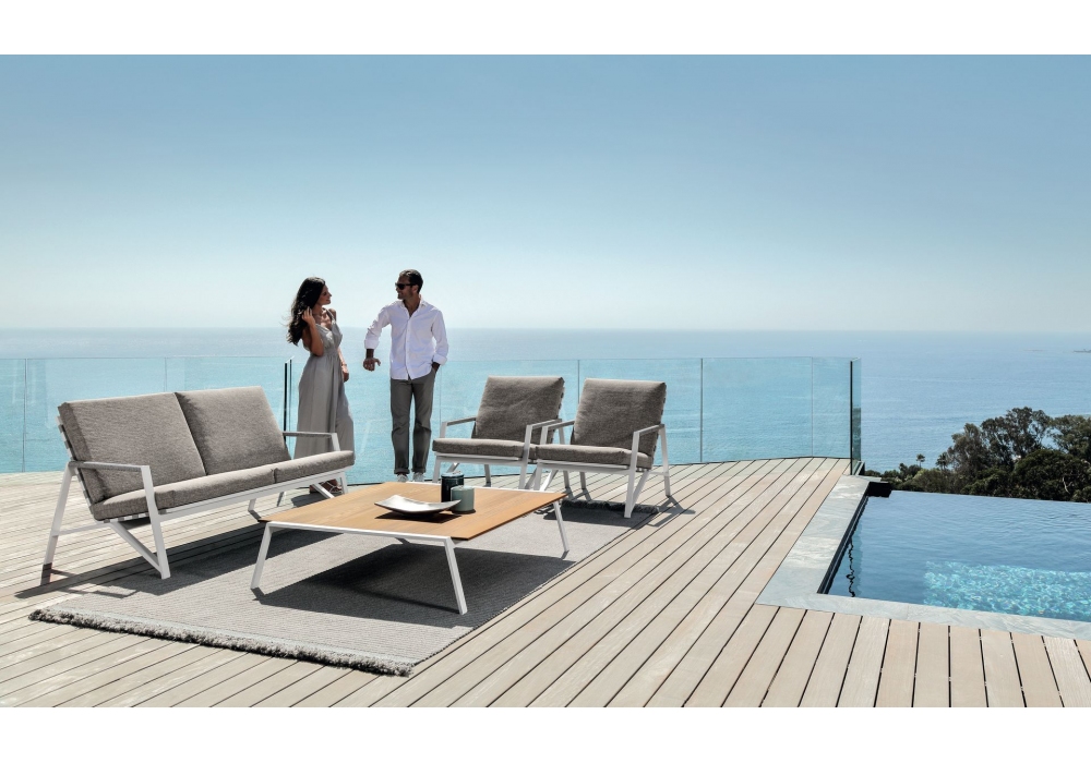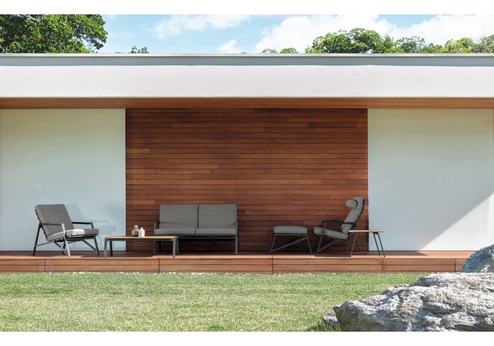 Cottage est un canapé par Ramón Esteve pour Talenti. Structure en aluminium thermolaqué disponible en différentes variantes. Les sièges et les dossiers sont soutenus par des sangles élastiques synthétiques, coordonnées à la couleur du cordon d'accoudoir. Coussins amovibles, faciles à laver et résistants aux intempéries.