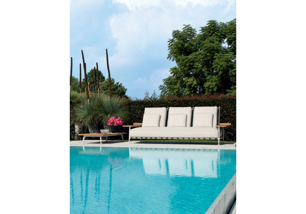 Fenc-e-Nature Cassina conçu par Philippe Starck pour Cassina est un canapé à 2 ou 3 places avec structure en métal peint, dossier tressé et revêtement en tissu. Coussins dévoratifs en option.