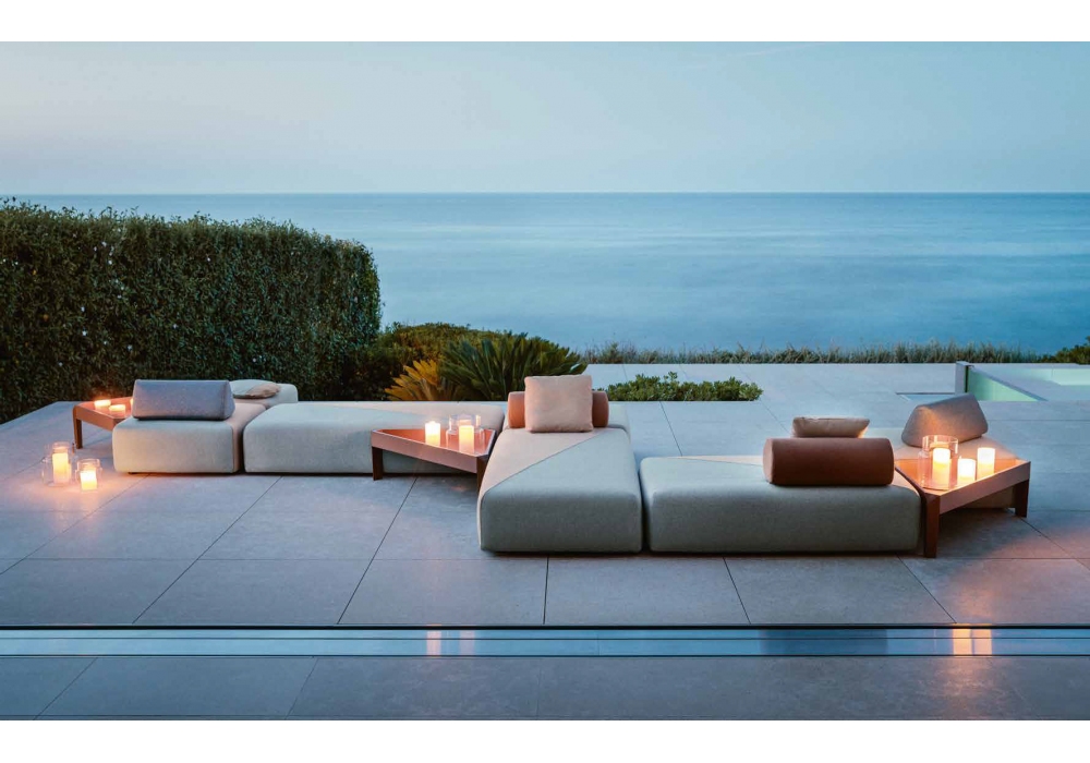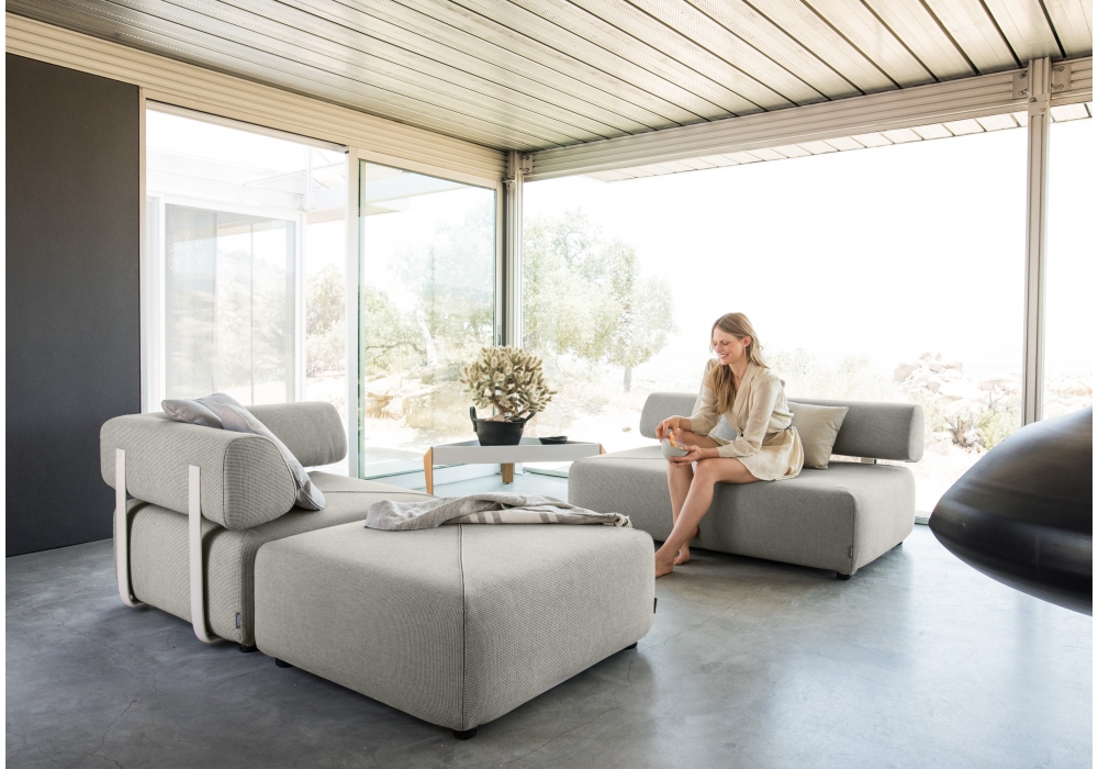 Brixx conçu par Lorenza Bozzoli pour Dedon est un canapé système modulaire. La structure est en acier thermolaqué recouvert de mousse de polyuréthane moulée. L'assise et le dossier sont disponibles en différentes finitions de tissu.