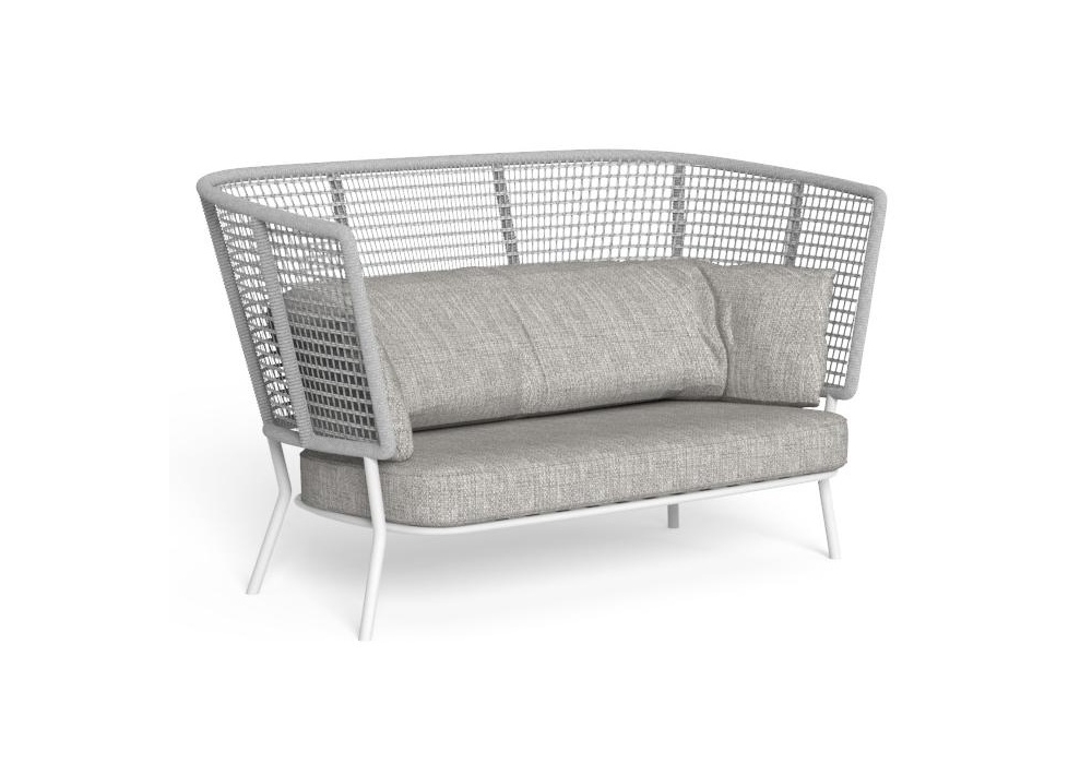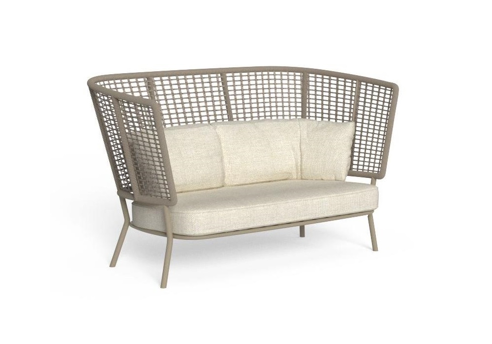 Moon Alu Love Seat conçu par Cristian Visentin pour Talenti est un canapé de la collection Moon est la solution parfaite pour meubler votre espace extérieur, structure en aluminium et corde avec assise et coussins en tissu mousse sec.