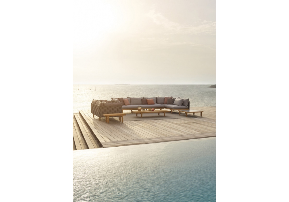 Sealine conçu par Jean-Marie Massaud pour Dedon est un canapé. Il est fabriqué en structure en teck et le dossier est disponible en corde ou en fibre Dedon. Coussins disponibles en différentes finitions.