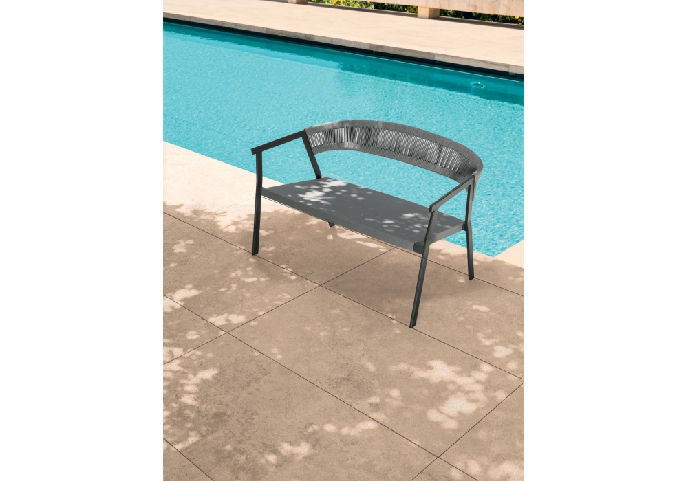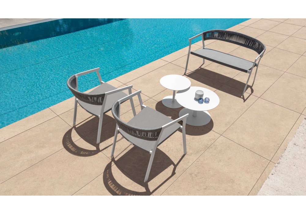 Key conçu pour Talenti est un canapé d'extérieur avec structure en aluminium en deux finitions et rembourrage d'assise en textilène.