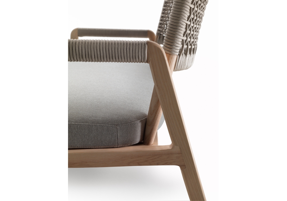 Ortigia Outdoor conçu par Antonio Citterio pour Flexform est un canapé de la collection Outdoor. Dossier et inserts sur les accoudoirs en entrelacé de polypropylène. Structure en bois massif Iroko au fini naturel, teinté gris et laqué blanc. Coussin d'assise recouvert de mousse de polyuréthane et d'un revêtement en tissu déperlant.