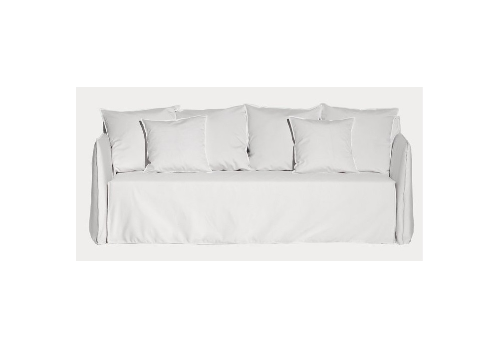 Ghost Out conçu par Paola Navone pour Gervasoni est un canapé d'extérieur rembourré réalisé avec un revêtement en tissu amovible.
