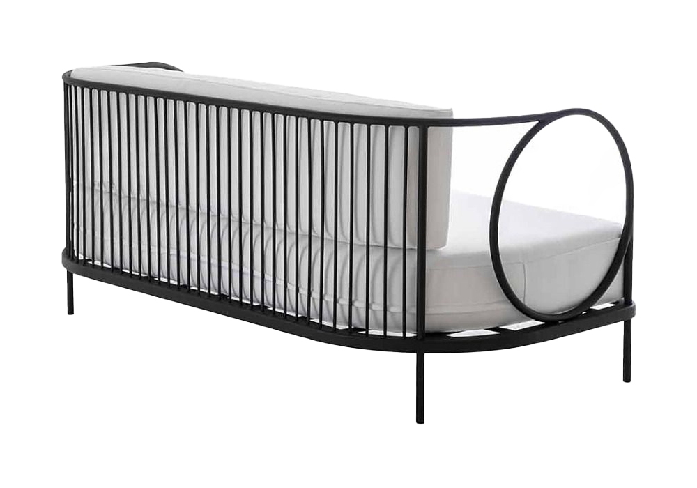 Ariete conçu par Adam D. Tihany pour Unopiù est un canapé avec structure en fer forgé travaillé à la main et peint en couleur bronze. Les coussins d'assise et de dossier sont en tissu et sont disponibles en différentes couleurs.