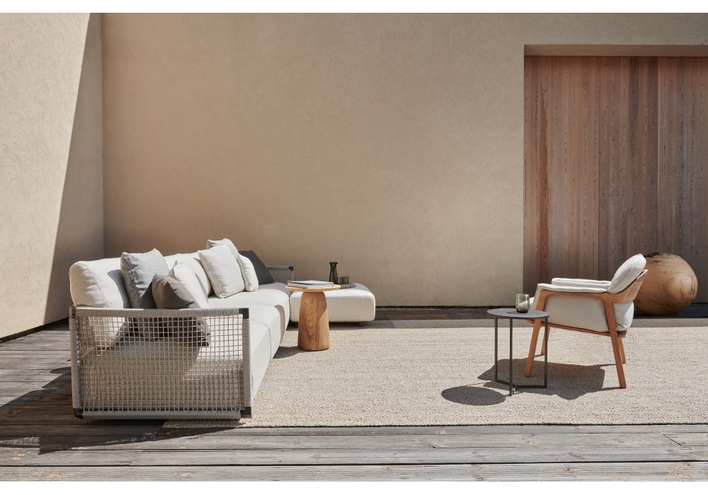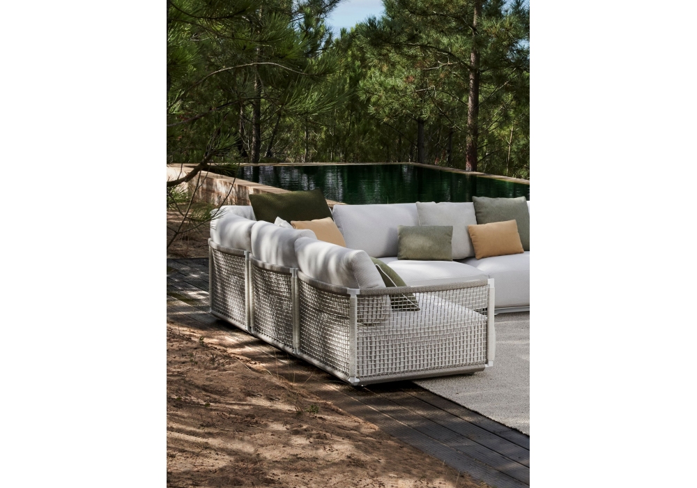Nodi conçu par Yabu Pushelberg pour Tribù est un canapé modulable avec une structure en acier inoxydable enduit de poudre de différentes couleurs, recouverte d'un tissage ouvert en Canax. Le rembourrage est ultra doux avec un rembourrage en différents tissus et finitions. Le canapé est disponible en différentes compositions, auxquelles des coussins de soutien supplémentaires peuvent être ajoutés sur demande.