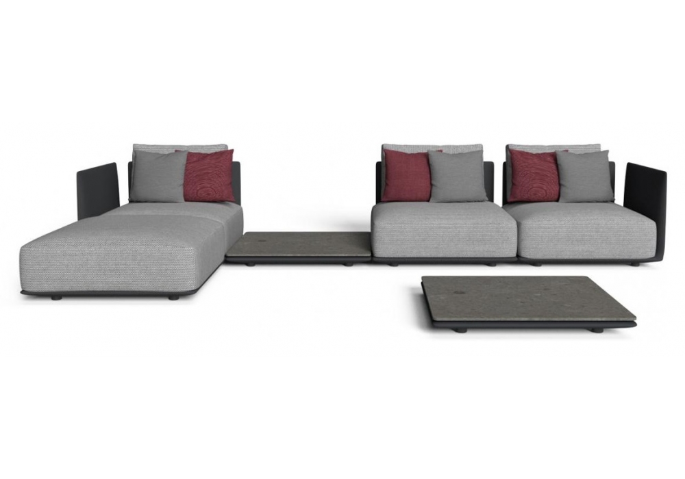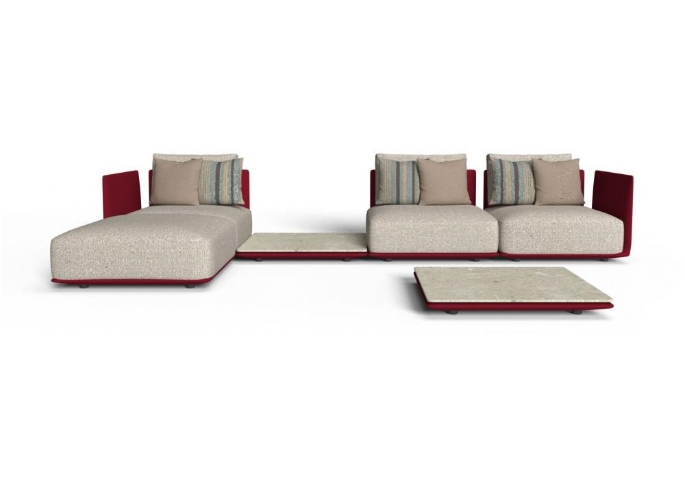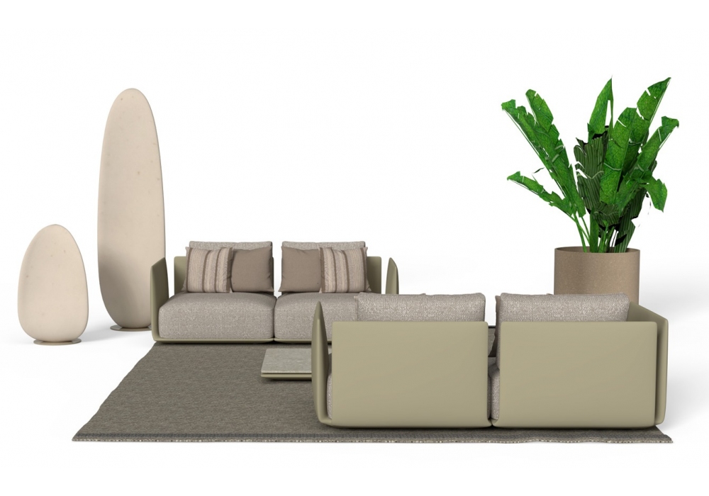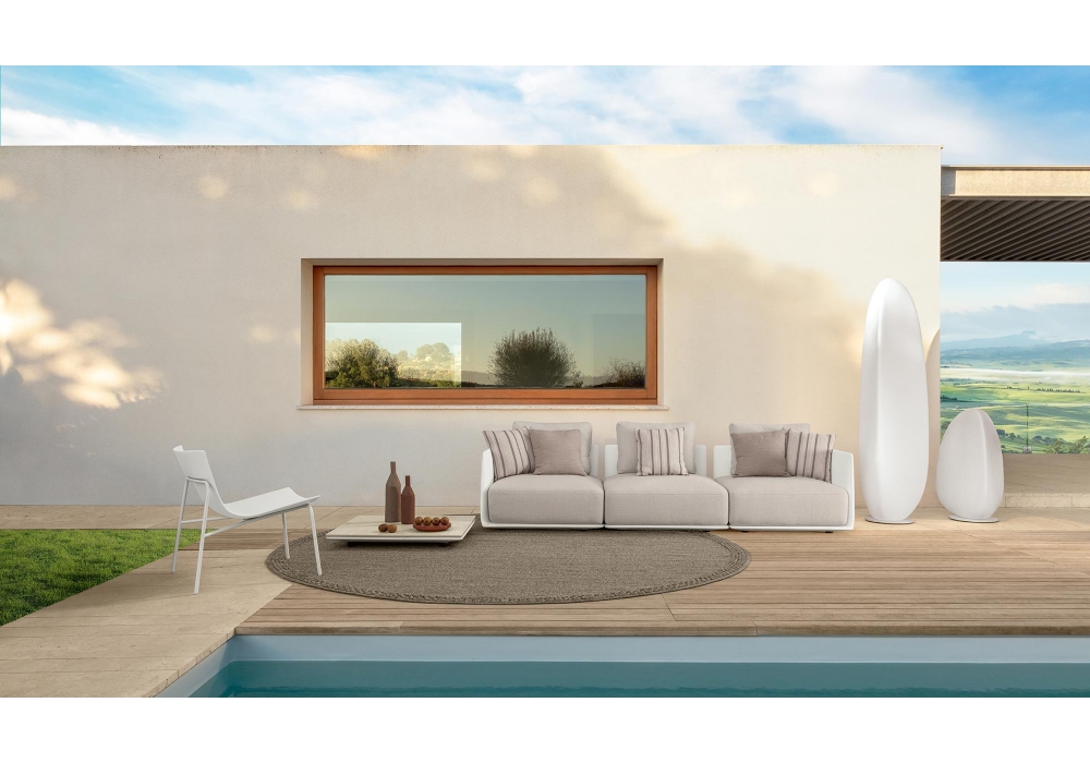 Malè conçu par Ludovica + Roberto Palomba pour Talenti est un canapé d'extérieur modulable avec structure en polyéthylène disponible en plusieurs couleurs. Les coussins sont déhoussables et recouverts de tissus d'extérieur résistants aux intempéries.