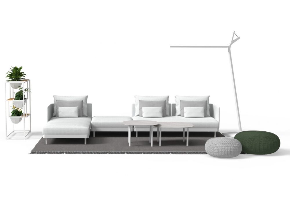 Slam conçu par Ludovica + Roberto Palomba pour Talenti est un canapé modulable d'extérieur, disponible en plusieurs configurations. Structure en aluminium enduit de poudre. Dossier et coussins sont déhoussables et recouverts de tissus d'extérieur résistants aux intempéries.