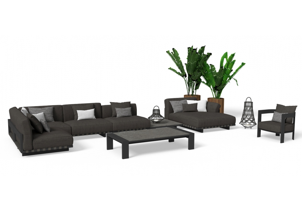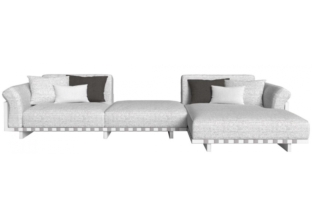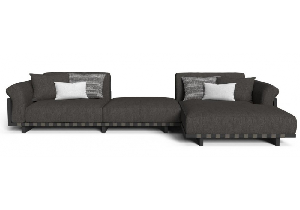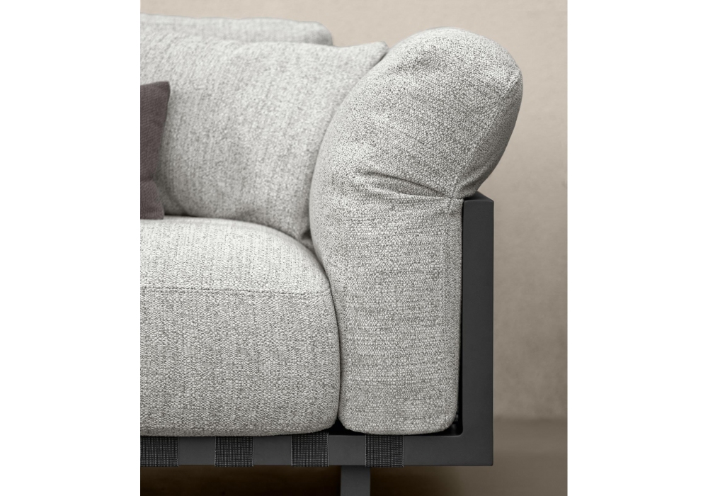 Argo Alu conçu par Ludovica + Roberto Palomba pour Talenti est un canapé modulable d'extérieur disponible en plusieurs configurations. Structure en aluminium thermolaqué et sangles élastiques synthétiques périmétriques assorties à la couleur de la structure. Les coussins sont déhoussables et recouverts de tissus d'extérieur résistants aux intempéries.