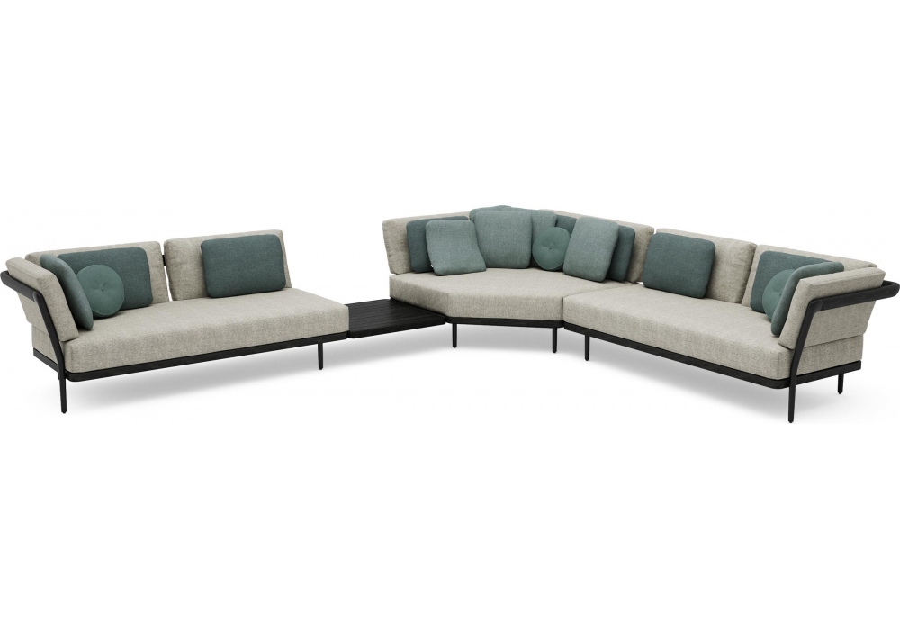 Flows conçu par Metrica Design Studio pour Manutti est un canapé modulaire avec structure en teck et revêtement en différentes finitions. Disponible en différentes tailles et compositions.