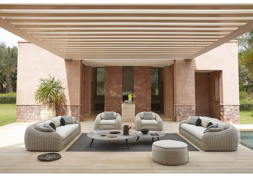 Kobo conçu par Stephane De Winter pour Manutti est un canapé d'extérieur 3 places avec structure en corde tissée à la main autour d'un cadre en aluminium soudé. Disponible en différentes finitions.